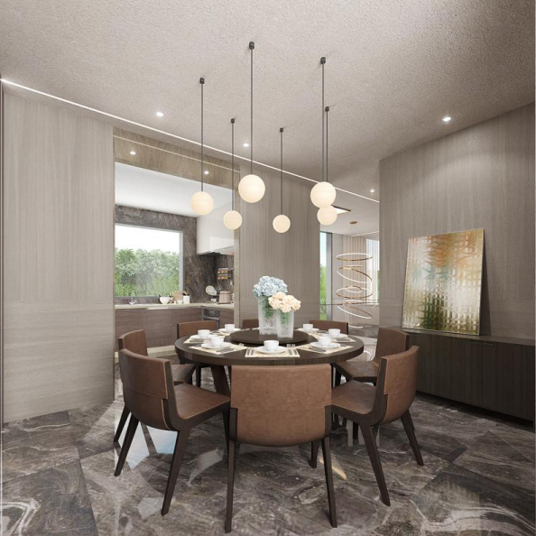 中粮瑞府是地产类别中的高端产品类别,更接近高端都市休闲风格,较大的各空间尺度和宴客需要。这次介绍的两户瑞府样板间,一户是合院式别墅,另一户是由一层往上、下空间发展的叠墅,提供给不同面积生活需要。