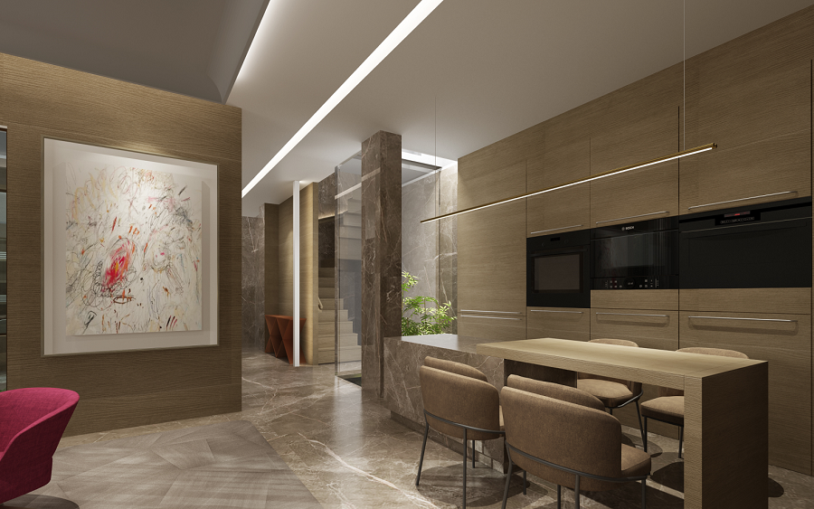 中大型空间设计,要考虑除了生活功能、个性化喜好以外的社交功能和仪式感。硬、软装材质、光线、高大上的考虑。